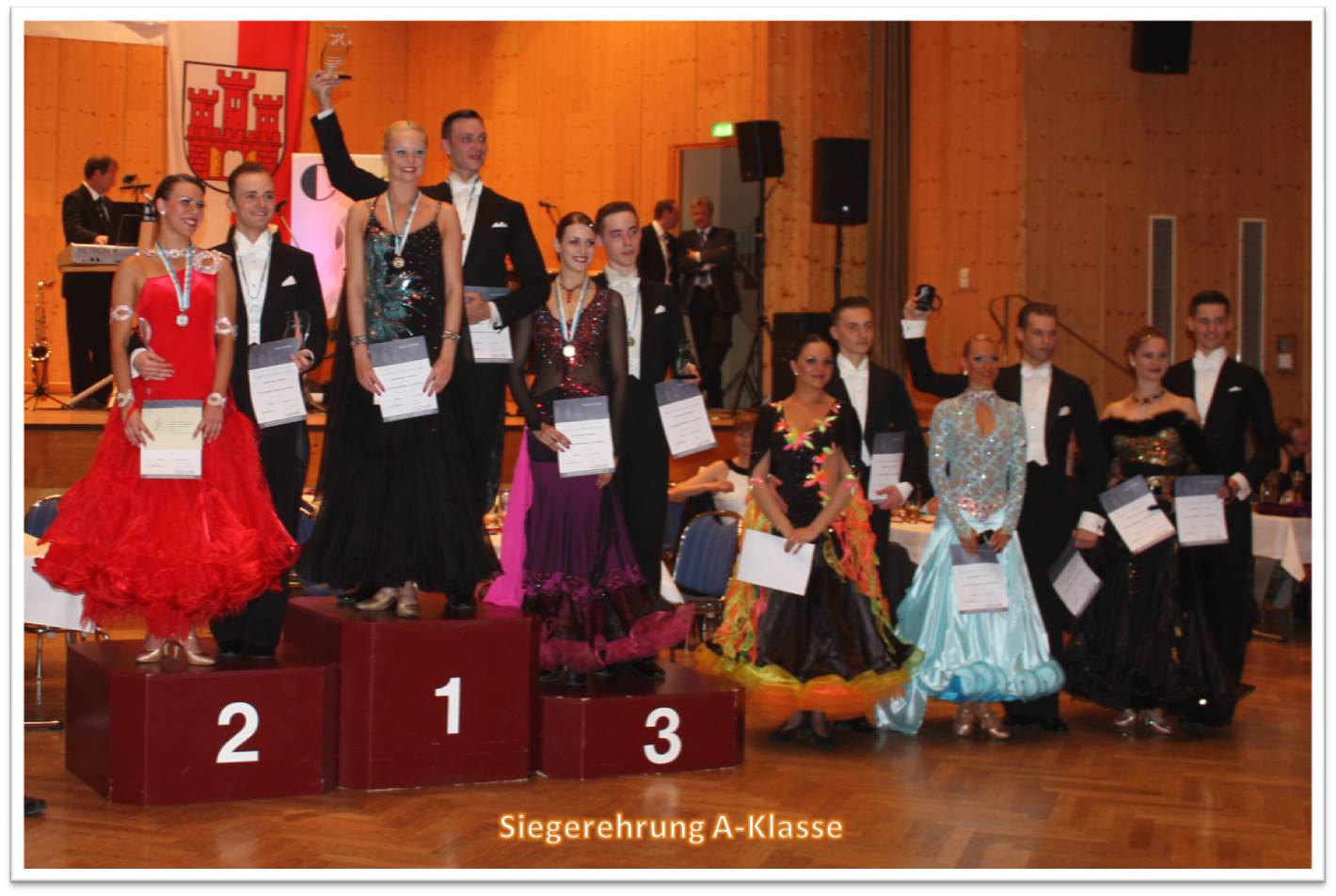 Den Höhepunkt des Tages bot die A-Klasse, deren Turnier im Rahmen eines festlichen Balles ausgetragen wurde, für den die Stadthalle Weilheim wie immer ein sehr schönes Ambiente bot. Thomas Koterba führte die Tänzer und das Publikum als Turnierleiter durch den Abend. Zwischen den diversen Runden spielte das Trio Caprice feinste Tanzmusik, zu der die vielen Besucher ihr tänzerisches Können im Publikumstanz erproben konnten.