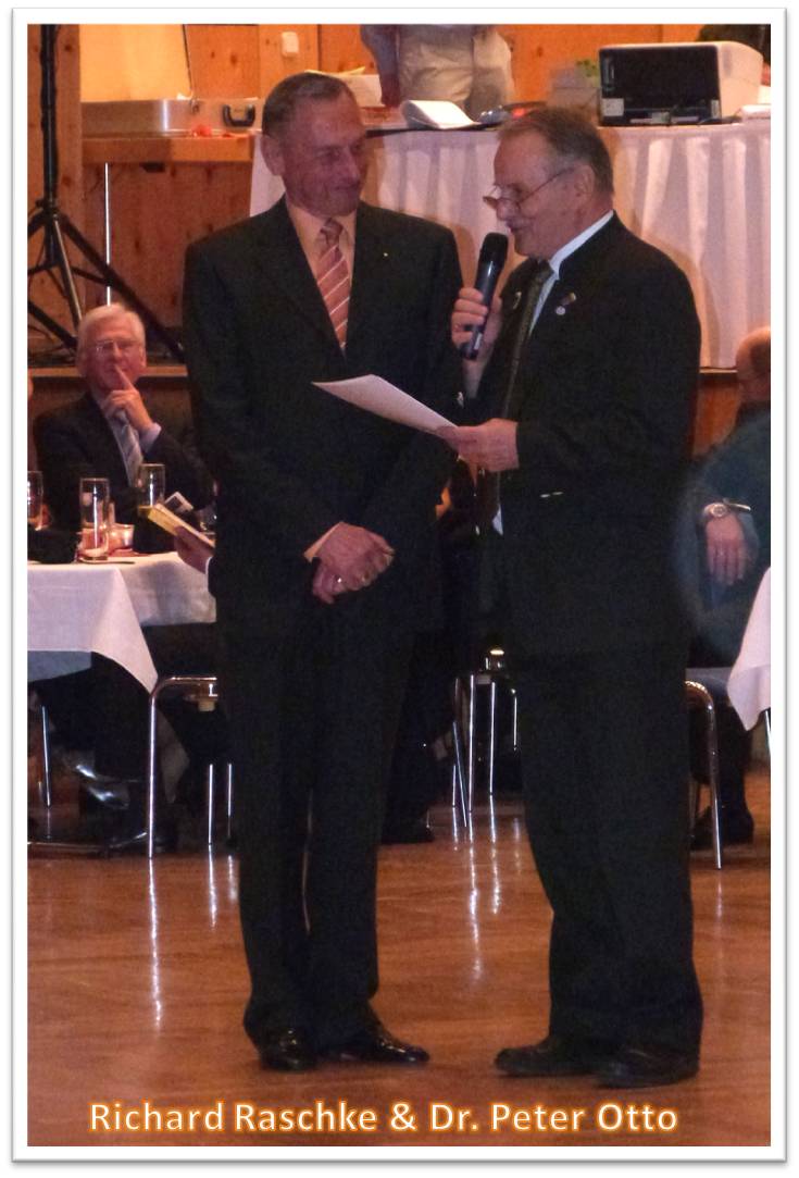 Dr. Peter Otto, Präsidiumsmitglied des Landestanzsportverbandes, ehrte in diesem Rahmen Richard Raschke für seine 25jährige ehrenamtliche Tätigkeit im Vereinsvorstand und in der Abteilungsleitung und überreichte ihm für die im Rahmen des Tanzsportes erworbenen Verdienste die Goldene Ehrennadel des LTVB.